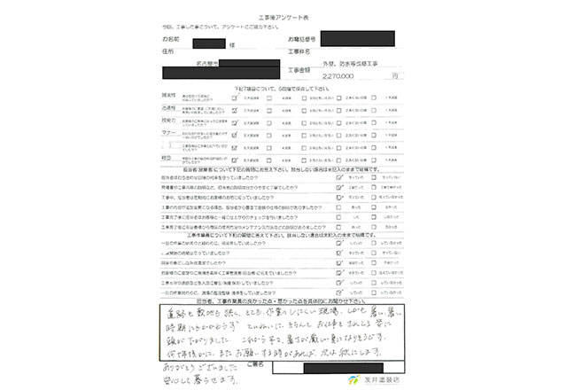 友井塗装には、これまでに多くのお客様から喜びの声が寄せられています。