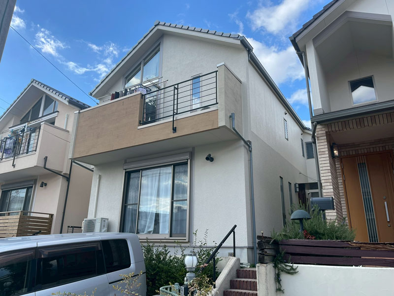 2025.11.13 外壁塗装 名古屋市緑区 K様邸 施工内容:外壁・屋根塗装工事工期:約12日間 外壁に細かなひびが見られたため、下地補修を丁寧に行ってから塗装を実施。あわせてベランダ防水も行い、雨の心配を解消しました。施工後は全体的にすっきりとした印象になり、ご家族にも安心していただけました。 施工 ビフォー・アフター before after